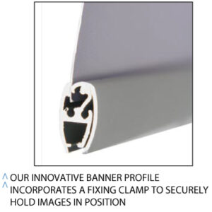 BANNER PROFILE features a unique fixing clamp, which securely holds images in