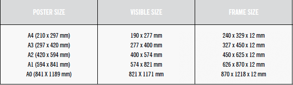 | Size | A4 (210 x 297 mm), A3 (297 x 420 mm), A2 (420 x 594 mm), A1 (594 x 841 mm), A0 (841 X 1189 mm) |