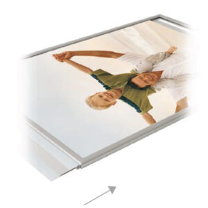Manufactured from a lightweight, aluminium, slide-in profile DOPPIO™ image frames provide both a cost-effective and practical solution for double-sided poster and information display. Accommodating A0 through to A4 paper sizes, the slide in the image frame is ideal for a ceiling suspension and is supplied complete, with, UV stabilised anti-reflex foils, back panel, hooks and optional hanging kit.